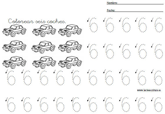 www.lectoescritura.es. Fichas de números. Ficha del número seis. Ficha del número 6 para imprimir.