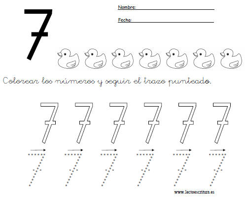 www.lectoescritura.es. Fichas de números. Ficha del número siete. Ficha del número 7 para imprimir.